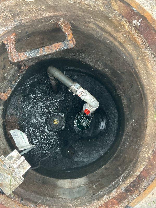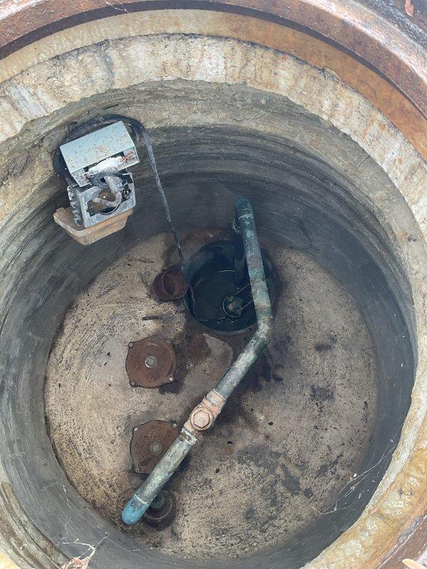 Performed annual flood control maintenance service on client's system. Inspected the concrete pit containing the pump assembly, check valve, and discharge piping. Observed moderate corrosion on metal components and standing water in the basin, but system remains functional. All components were tested and confirmed operational per manufacturer specifications.